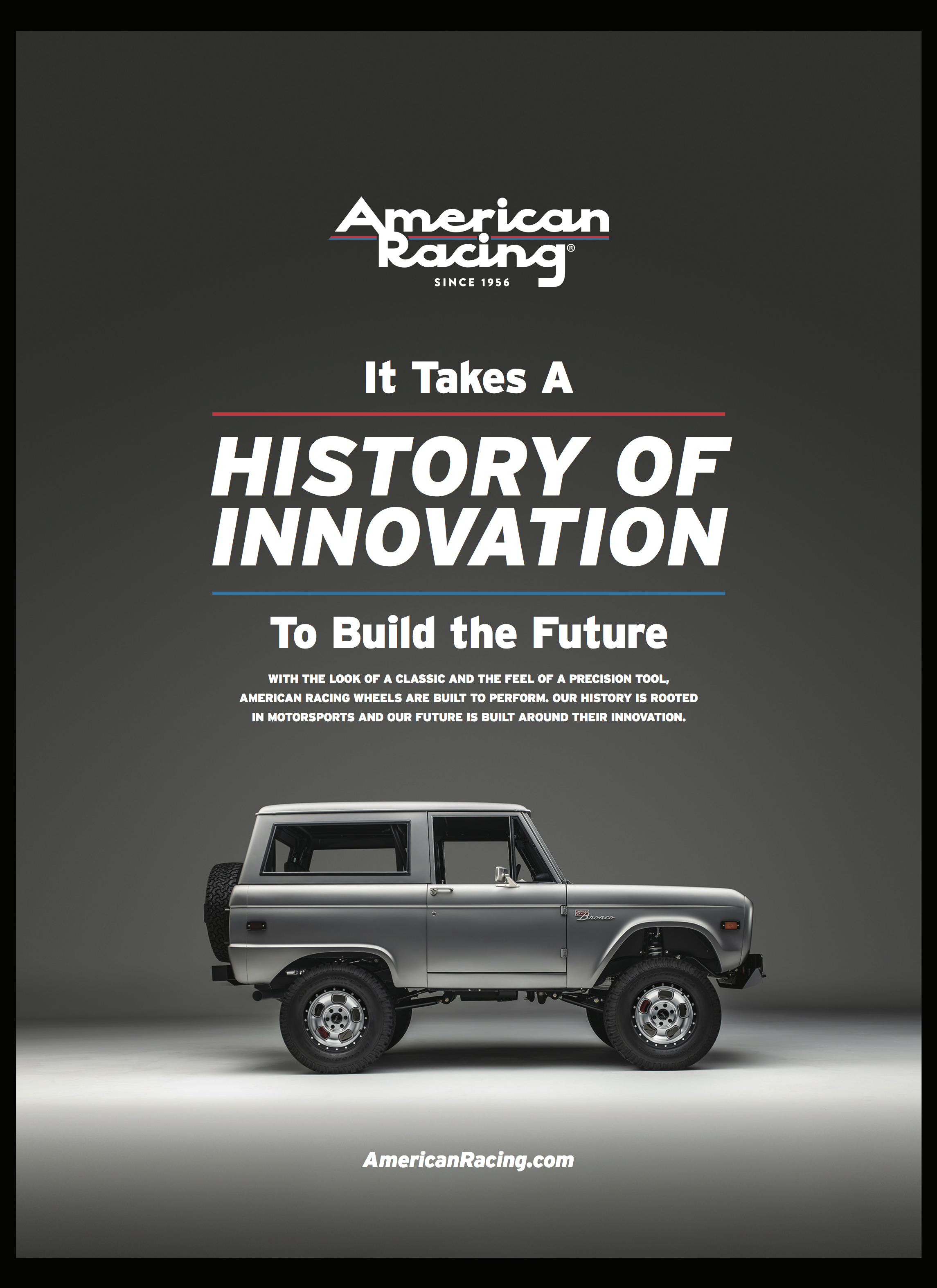 As one of Wheel Pros' premier brands, American Racing had a challenge. Its brand was rich with heritage, but forward-thinking innovation still needed to be at the heart of the message. This TV, print and digital campaign highlighted that those two aspects of their brand will be forever intertwined.